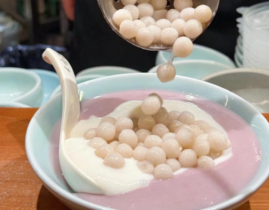 Grandma’s Sweet Soup: taro and mochi balls topped with osmanthus syrup.