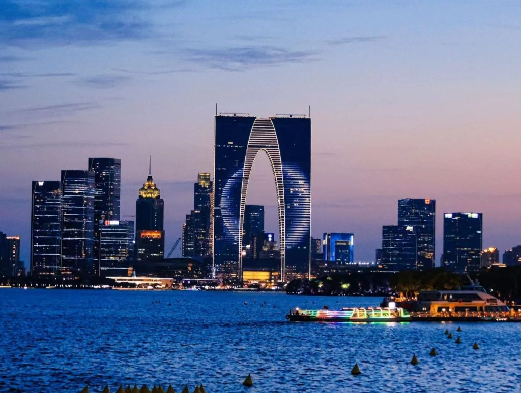 Locals jokingly call it the “Autumn Pants Tower,” but the 300-meter-tall Gate to the Orient is far more than its nickname. It’s Suzhou’s bold leap into the future — a modern landmark overlooking Jinji Lake.